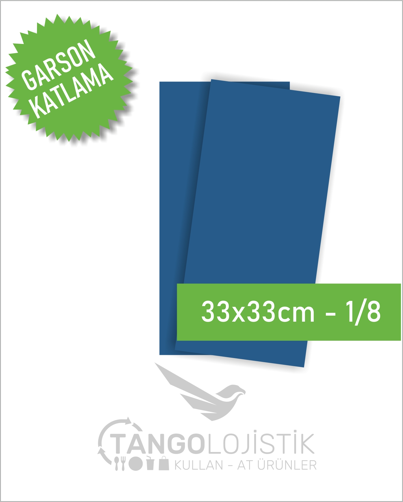 Peçete açıldığında 33 x 33cm ebatlarında, çift katlı, Lüks garson katlama peçetedir. Servise hazır 1/8 katlı olarak paketlenmiştir.