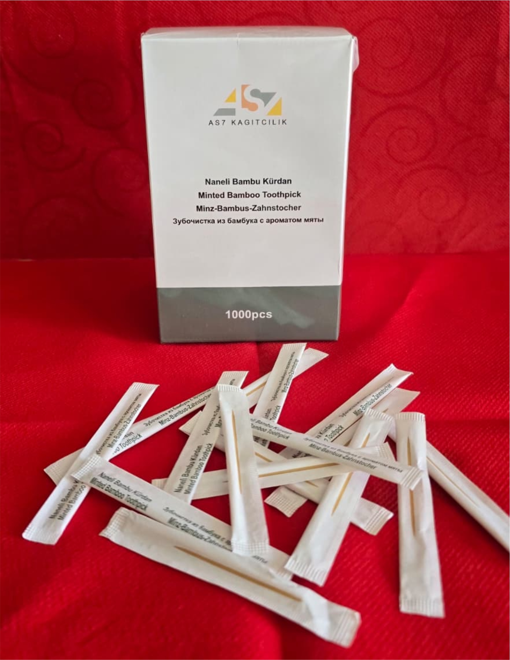 Kutu içeriği: 1000 adet nane aromalı, naneli kürdan. Yemek sunumlarında kullanılan, üzerine nane aroması verilmiş kürdanlardır. Bu aroma , sunulan yemeğe veya içeceğe hoş bir görsel ve tatlı bir nane aroması katmayı amaçlar